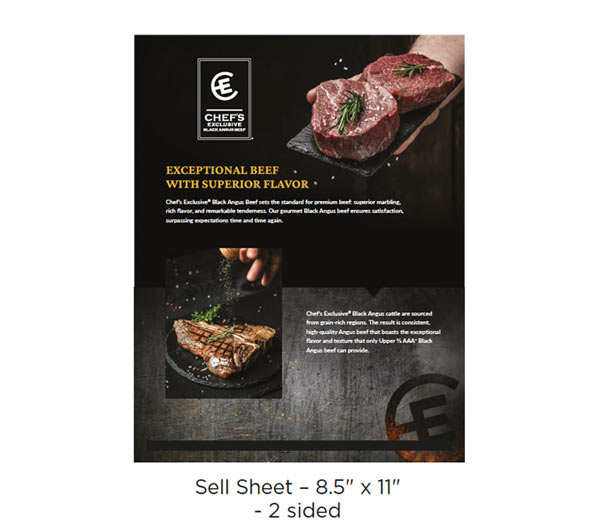 Offrez-leur directement dans votre comptoir. Vendre le Chef’s Exclusive® Black Angus Beef bâtit la fidélité et augmente vos ventes et vos marges.